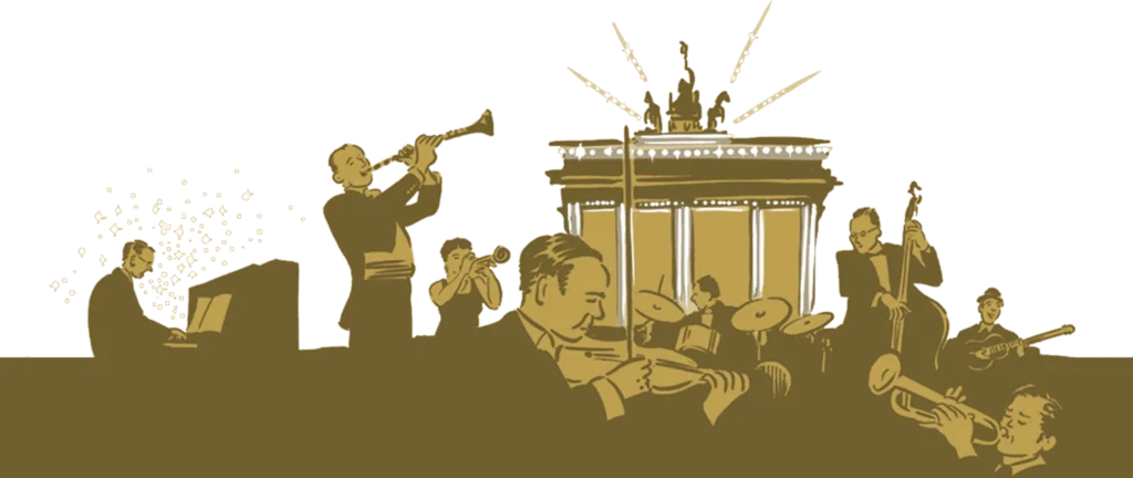 uns mit auf eine einmalige Zeitreise: Von den Goldenen Zwanzigern bis heute, von Swing bis Loveparade, von Marlene Dietrich bis Seeed.